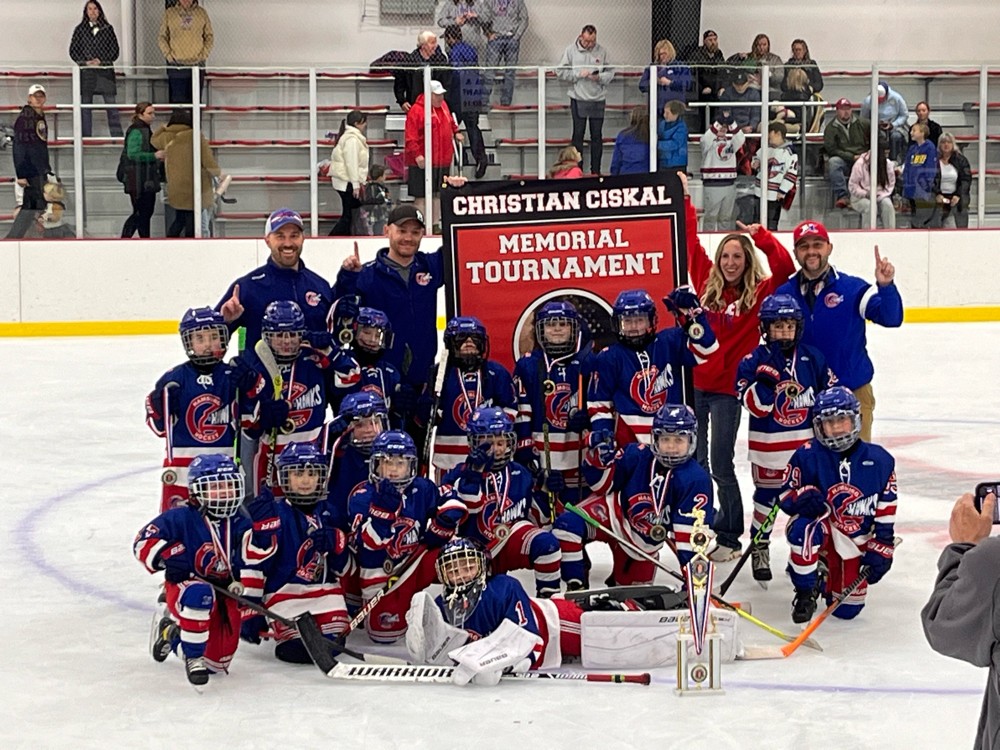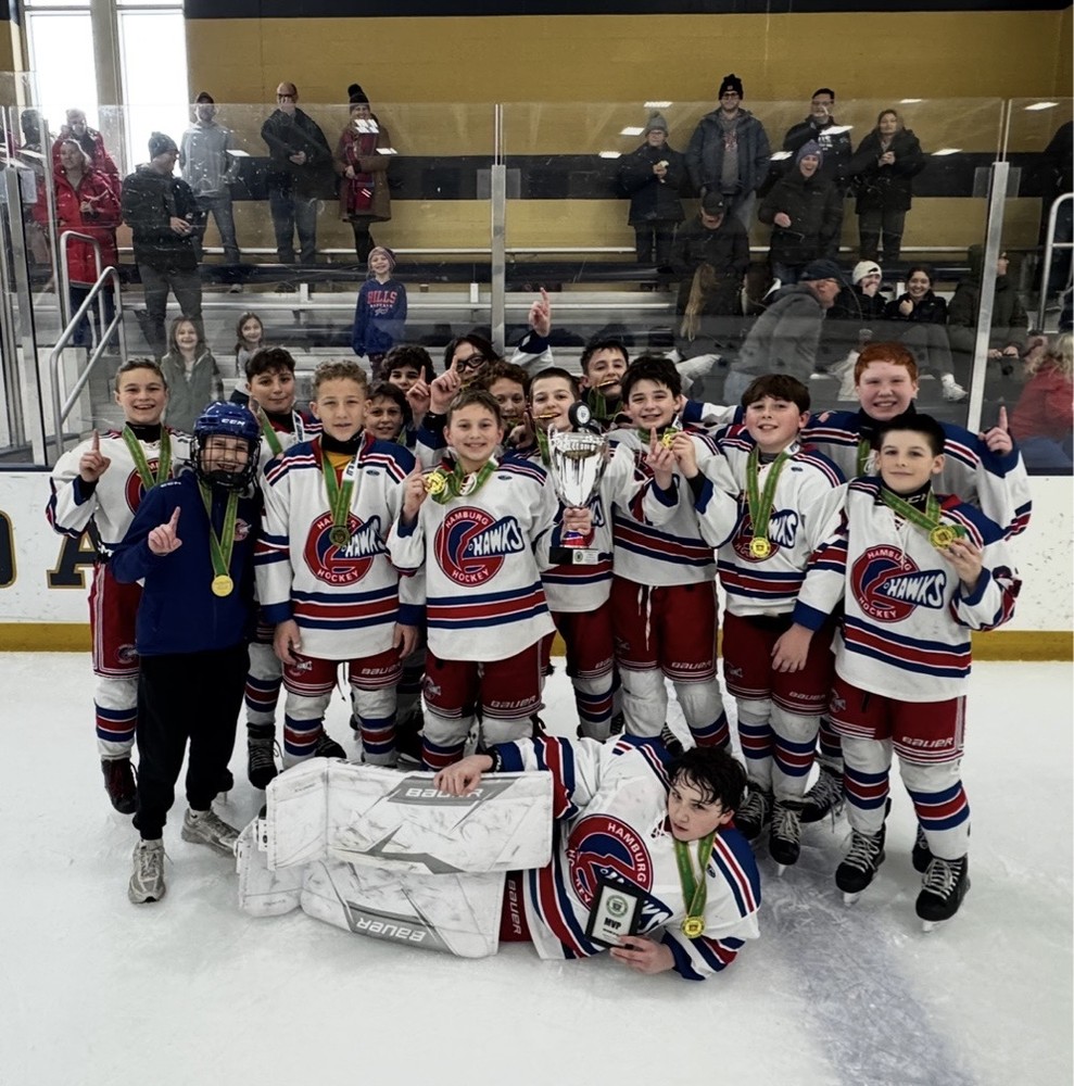 Hamburg Hawks 12U TB team played in a hard-fought tournament at Notre Dame. The team went 5-0 in the tournament. They won the championship game 3-2 against a team from St. Louise. Goalie Andy Kempster took home tournament MVP.
